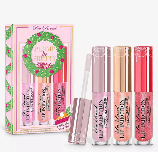 ✨Too Faced Plump&Pretty Kisses: Travel Size Lip Injection Maximum Plump Lip Plumper Gloss Trio Set✨