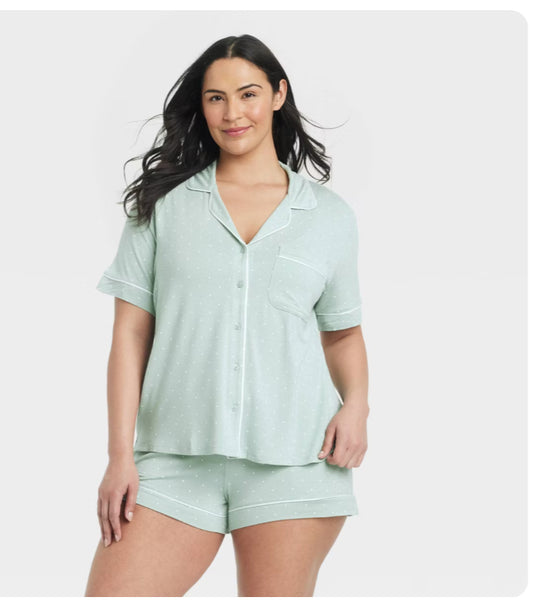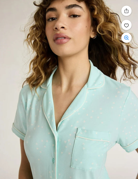 Pijama de Short Verde Menta con Corazones Blancos