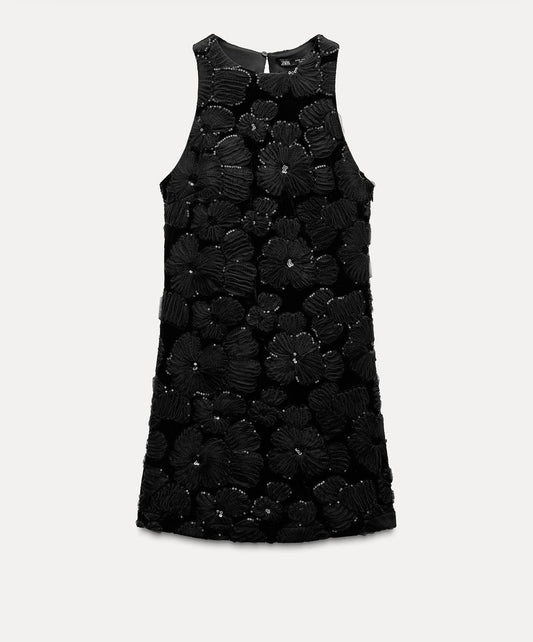 Vestido Negro Flor Lentejuelas